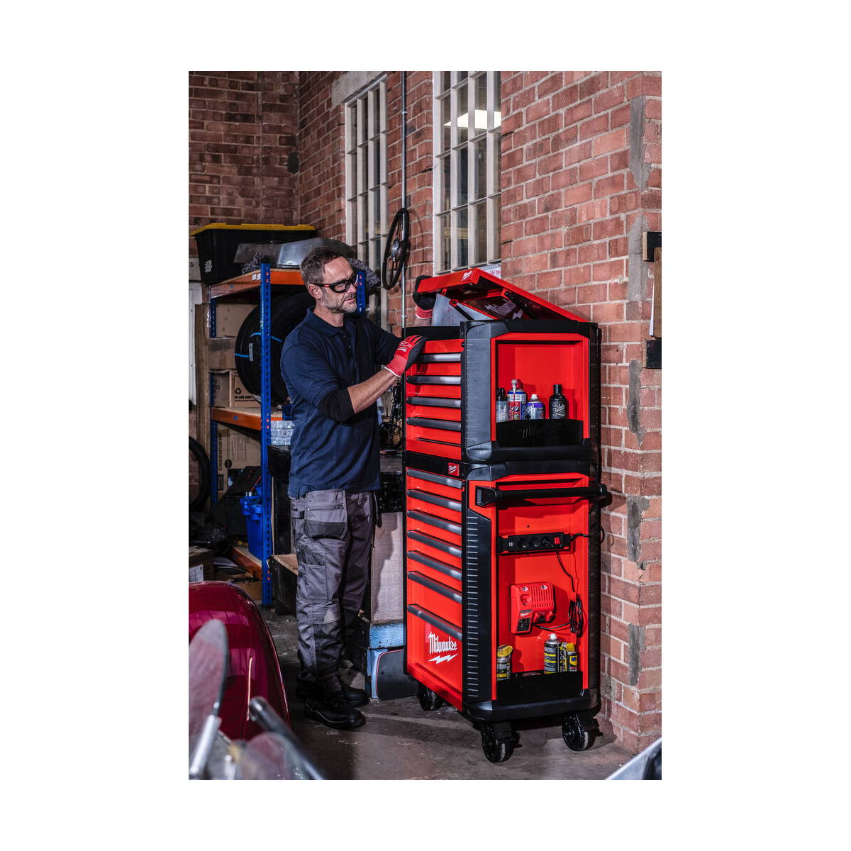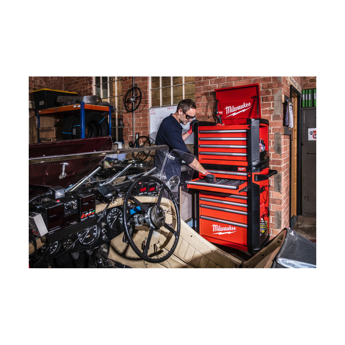 Milwaukee Servante d'atelier équipée mobile 78cm à 7 tiroirs avec 337 Outils (4932500753) - Présentation: