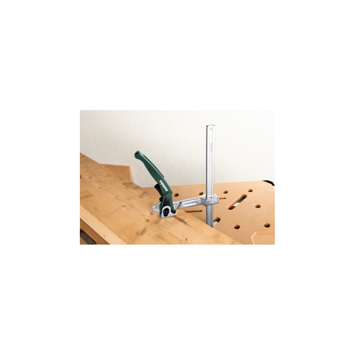 - Fixation rapide grâce au levier de serrage à crans compatible avec les supports de travail METABO MAB 82
