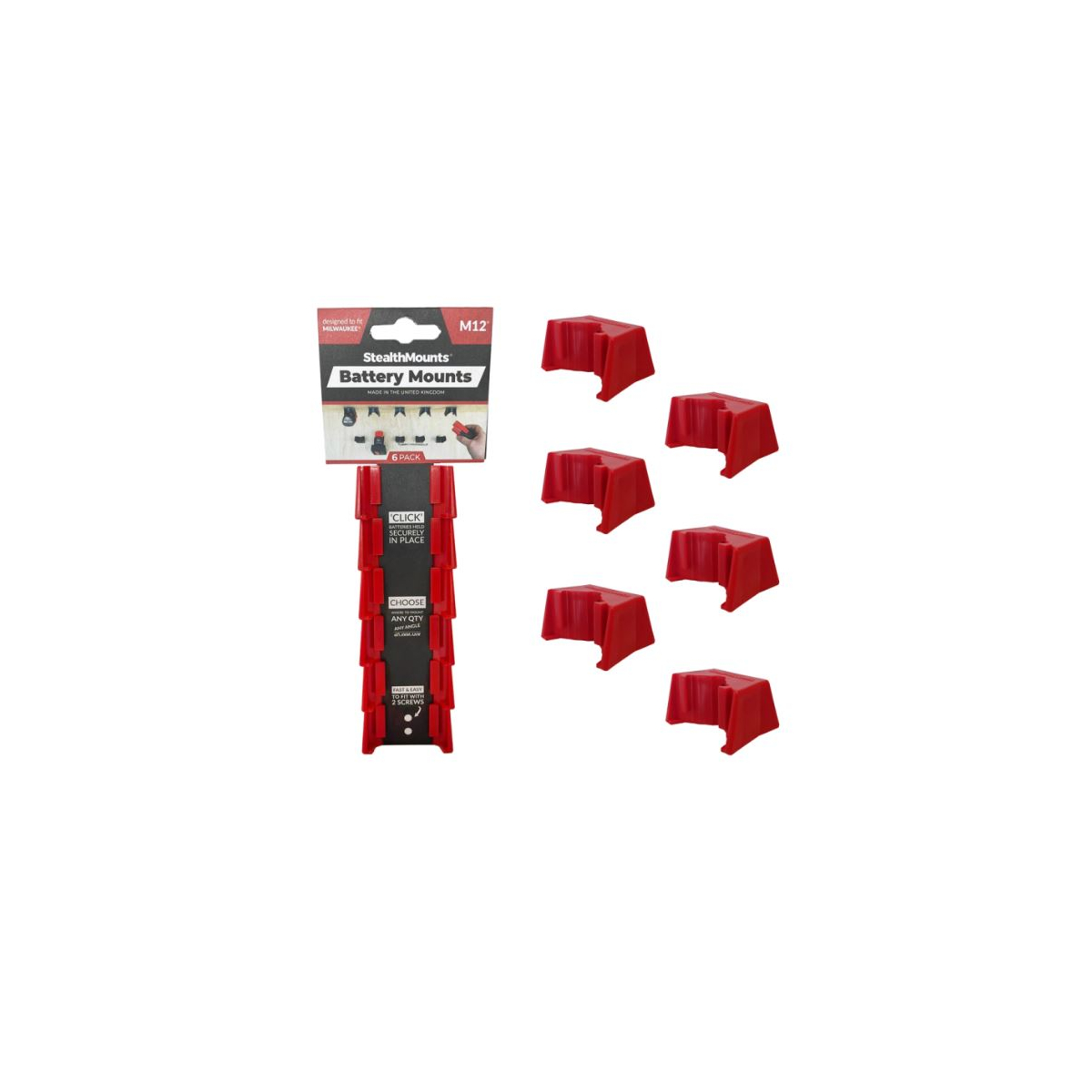 StealthMounts Supports de batteries Milwaukee 12v 6-pack ROUGE BM-MW12-RED-6 - Présentation:
