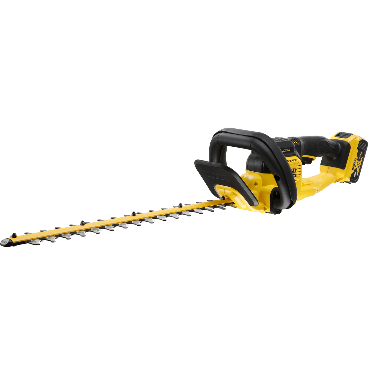 Taille-haies 55cm sur batterie 18V Dewalt DCMHT563P1-QW compatible avec la Gamme Dewalt XR équipée d'une lame double action en acier trempé.