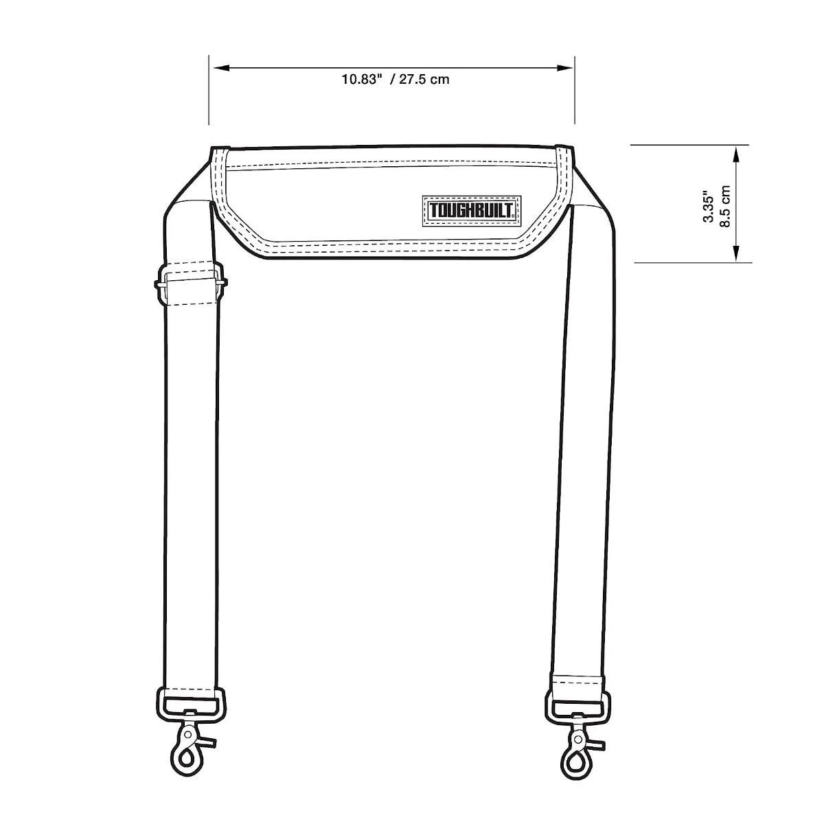 - La bandoulière rembourrée Toughbuilt TOU-55-B offre un confort ultime. Son rembourrage rembourré répartit uniformément les charges et est réglable pour s'adapter à toutes les tailles. Il est compatible avec les sacs Toughbuilt et les pochettes ClipTech spécifiques. Fabriqué avec un tissu durable de haute qualité, une quincaillerie en acier extrêmement résistante et un renfort de rivet