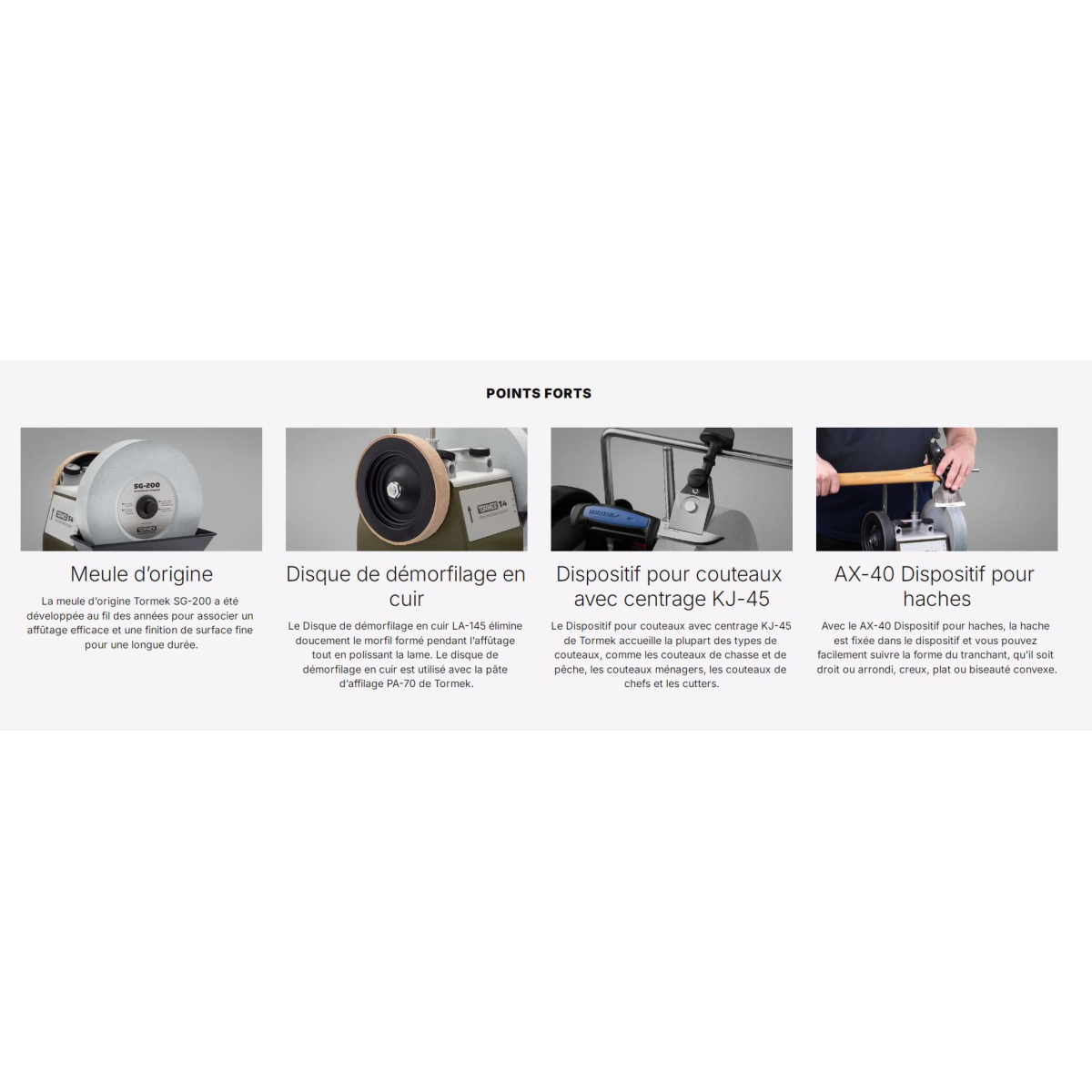 - Spécial outdoor : affûtage optimisé pour couteaux & haches