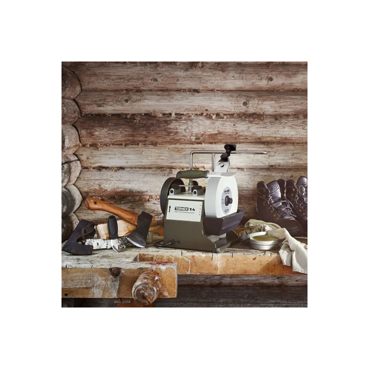 Tormek T-4 Bushcraft – Affûteuse à eau pour couteaux et haches outdoor - Inclus: