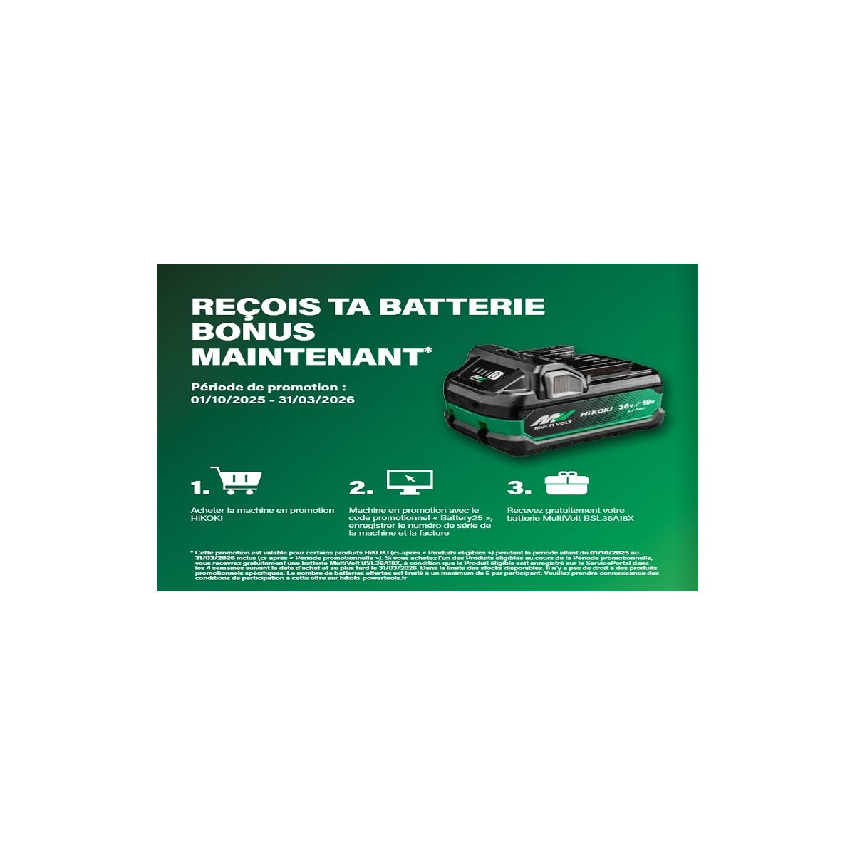 Visseuse à choc brushless Hikoki WH18DC sans fil compatible avec les batteries 18V et MULTI VOLT, machine vendue seule sans batterie et sans chargeur. Modèle haute de gamme de la marque japonaise HIKOKI avec protection IP56, Triple Hammer, 210Nm de couple et sélecteur de vitesse 4 modes.